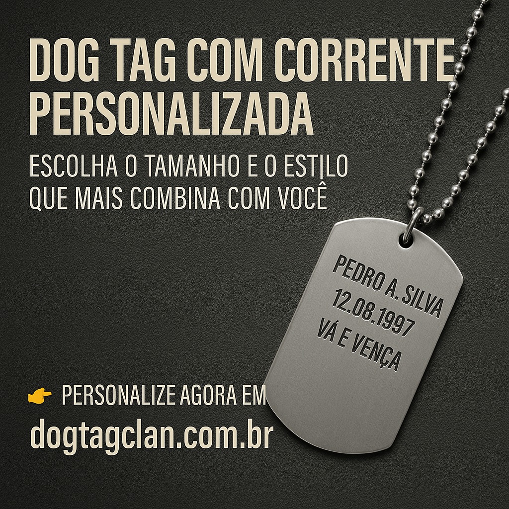 Seja para uso militar, presente de formatura, homenagem a alguém querido ou lembrança de fé, a dog tag com corrente personalizada é uma forma de gravar sua história no aço — literalmente.