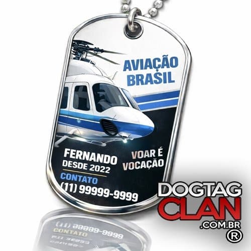 A Dog Tag Aviação – Piloto de Helicóptero Personalizada é produzida pela DogTagClan, especialista em dog tags personalizadas com identidade, propósito e qualidade.