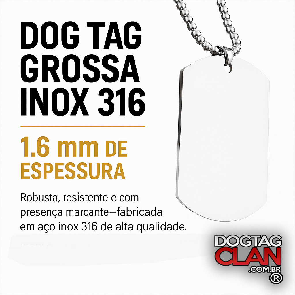 A Dog Tag Grossa Inox 316 é mais do que um acessório — é uma peça de presença, construída para durar e impressionar.