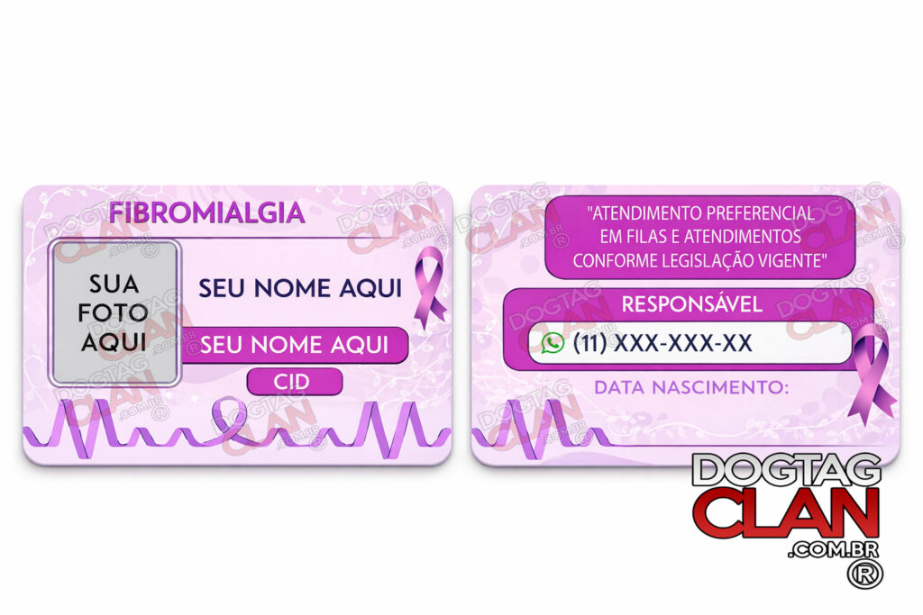 Uma carteirinha de fibromialgia personalizada é um cartão de identificação não-oficial que contém informações importantes sobre a condição de saúde do portador. Diferente de documentos oficiais emitidos por órgãos públicos, essa carteirinha serve como ferramenta de apoio e comunicação.