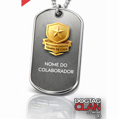 É uma dog tag corporativa personalizada, produzida em aço inox de alta durabilidade, com gravação do logo da empresa, nome do colaborador e o tempo de casa, podendo seguir um sistema de níveis por acabamento (prata, ouro, edições especiais).