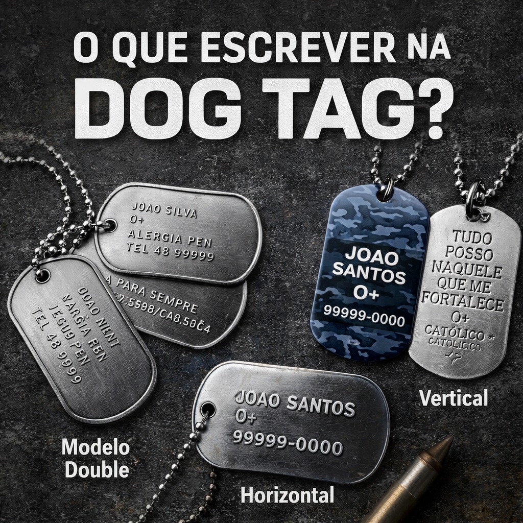 Quando alguém pergunta “o que escrever na dog tag?”, na verdade está buscando duas coisas: